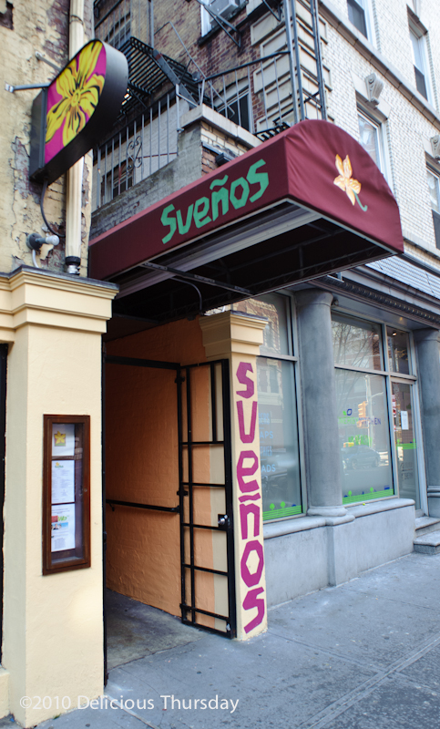 I arrive at noontime to West 17th Street and I am feeling a little lost. Granted I did, only recently, return home (jet lagged) from 22-hour plane ride from India and, in general, I do have a very poor sense of direction – but I usually know my way around the city better than this. From the corner of 17th Street and 8th Avenue I happily spot the maroon colored awning that reads: SUENOS in a funky teal green block lettered font. And from street level in front of #311 I can see a small window that leads to the long and narrow subterranean kitchen. All the signs say I am surely in the right place… but I cannot find the door.