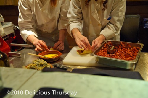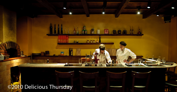 Amy & Liza preparing for the evening at the Chef's Bar - the best seat(s) in the house - Photo by Sandy Hechtman - sandyhechtman.com