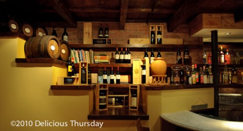 I enter the restaurant through the wooden doors and walk past the barrels of aged balsamic vinegar and bottles of wine from family owned vineyards. The click-clack of my boot heels against the large wooden plank floorboards in the ample and open space reminds me more of a rustic farm-house than a downtown restaurant. I slide my gloved hand along the sleek and smooth Tuscan marble bar and I greet Jon, Bellavitae’s owner, at the other end. Luring me into the back, along with Jon’s obvious charm, are the Venetian style lamps – handmade with silk and hand painted with gold – dotted throughout the interior. This is the kind of place you’d find (and I did find) in the hills surrounding Bologna, not just off Sixth Avenue. But sometimes… we New Yorkers… we get lucky enough to have it all. Country comforts in an urban setting.