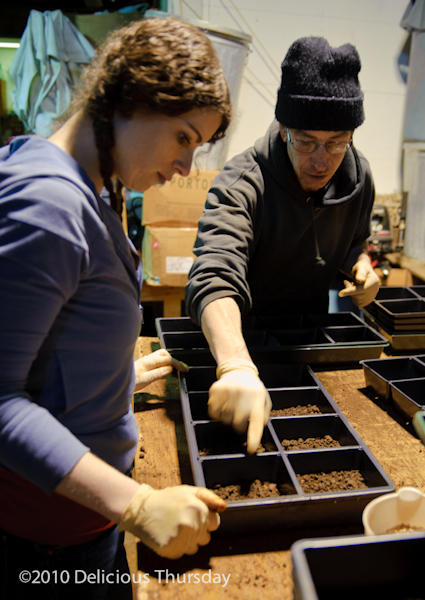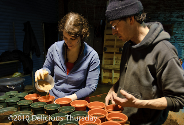 My seeds are set. I am still soaked from my kitchen sink shower and now I am covered up to my elbows in soil. The warehouse is cold, damp and dark – and I am dirty.