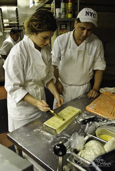 Ravioli, however, has come a long way. Gone are the days of leftovers encased between two thin sheets of pasta dough. No longer are they filled with things of little value. Now their inner workings are so precious and filled with such worthwhile ingredients – think: shrimp, chives and cream at Centro Vinoteca – that our main task (Humberto’s and mine) as it relates to ravioli is to be sure that those insides don’t escape their safe shell and find themselves floating around a hot pot of boiling water. After we fill the ravioli we press the edges to ensure they are sealed. We press. And we seal. And we press again. This small task is life or death for our dish. And we learn that even though something starts out being undervalued or looked over, the world eventually comes around to getting it right. We are no longer in high school and gone are the days of that disasterous Greek meal on Amsterdam Avenue. Our ravioli is sealed with goodness inside. No shrimp will dare swim away. And your tastebuds will be the better for it.