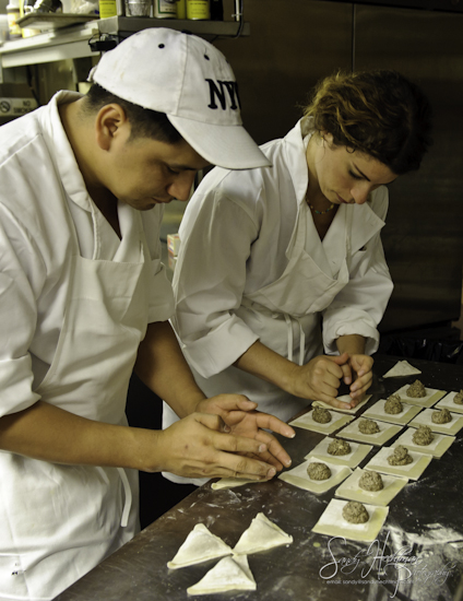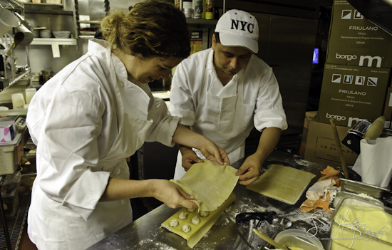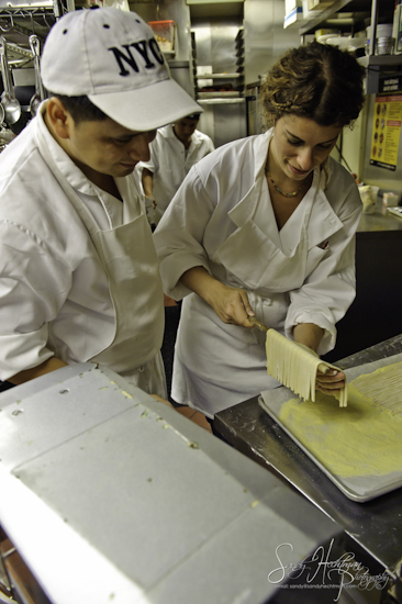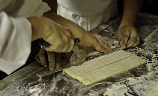 Humberto explains the seemingly simple steps and the types of pasta we need to prepare for tonight’s menu. There are so many that my mind is racing and I am ready to run home to grab that box of dried pasta from my shelf and dump it into a bucket of boiling water. But I wait, and make an attempt to learn these lessons – with Humberto and his 3 years of pasta prep hovering over me all along the way.