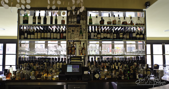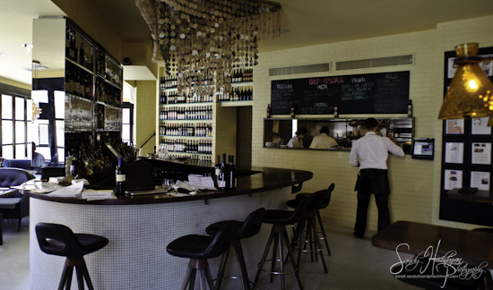 Everything is bright and white as the light floods in through the floor to ceiling window panes. Each curve and bend of the oddly shaped bar begs you to join her for a drink. The aromas from open kitchen tease, tempt and toy with you as they urge you order something more. The colorful chalkboard menu demands that you dabble in the dolci of the day: Fresh Ricotta Cheese Cake with Slow Cooked Apricots & Mint. The only thing that would make that dessert more delectable is if Enver or Rizo would deliver it to you.