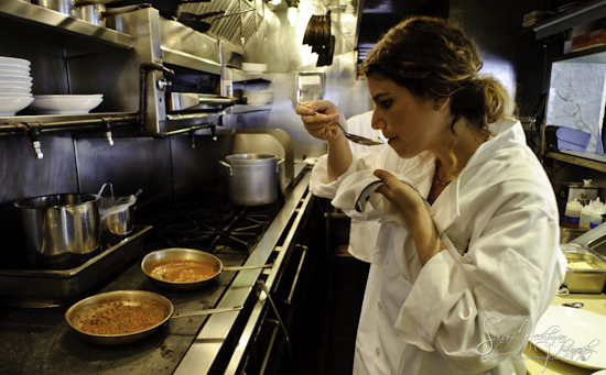 The prep kitchen is as clean as my apartment – only after my parents arrive for a visit. Shiny equipment, stainless steel pasta dough mixers, and enthusiasic workers fill the space. But those cool afternoon winds never wind their way down here. Busy workers and boiling bowls of red sauce raise the temperature by 15 degrees. My only escape is the refreshingly cold but painfully brief breeze I feel from the oft opened freezer door. Despite the heat, I attempt to explore the endless possibilities presented by pasta – which starts so simply with eggs, flour and salt but becomes so much more.