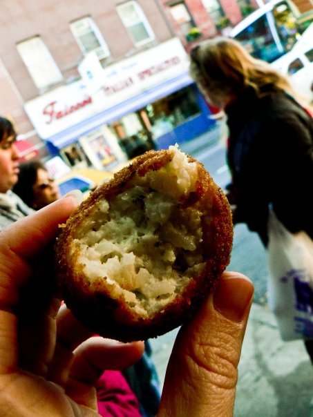 I just read you new Rice Ball story at Faccio’s. My family has rice balls at every important holiday and celebration. It is a given. In my experiences of rice ball tasting from every pork store and pizzeria that crosses my path, I have learned that they can be as different inside as the many faces you may meet on the streets of New York. They are all delicious and, of course, fried. How can you go wrong??