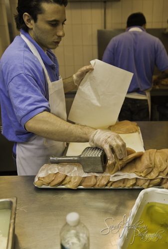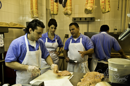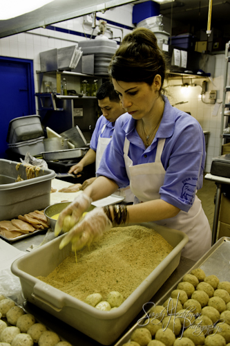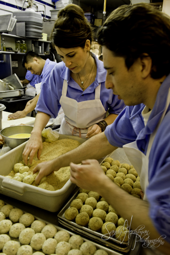 With Julio on hand for advice, and Eddie always an earshot away, it’s time for Franco and me to mold each ounce into a full tray of 85 perfect portable bites. We drench them in egg wash, shower them with bread crumbs and dip them in the deep fryer. 85 down and 215 to go to complete today’s rice ball requirements. Franco works fast and he works hard. But according to him, he has a debt to repay to the ‘best boss in the world.’ As we round off those rice balls, Franco – with the passion of an Italian – fills me in on how he is forever indebted to Eddie Faicco. When Franco asked Eddie for a job, it became instantly clear that he didn’t need anyone new. But since Eddie has the biggest heart on all of Bleecker Street, he took him on anyway. Maybe these rice balls are lucky after all? Not only does Eddie take on the lost, lonely and unlucky, but he buys us breakfast every morning as well. In these tight quarters in the back basin of Faicco’s, it’s difficult to tell where one worker ends and another begins. They finish each others task and do so with speed and a smile. I’ve rarely seen 10 guys so talented and attentive. But then again, the father of this ‘family’ is worth working hard for.