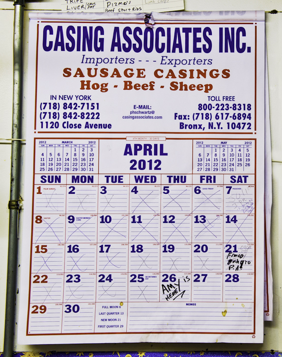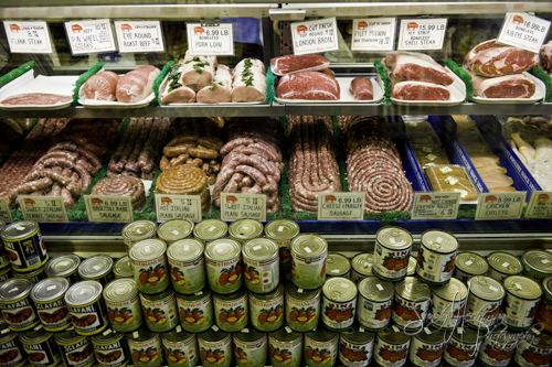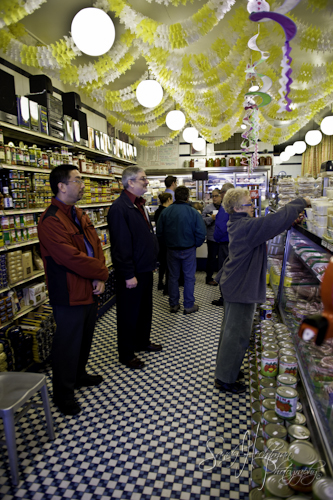 With my luck ready to run out and a rainstorm about to arrive, I step into Faicco’s small space and walk safely over the sawdust covered blue and white checkered tile floor. The soft yellow streamers hung from the ceiling serve to brighten this grey day. I’m compelled to step further into Faicco’s by the calling of the clear glass cases featuring house-made sausages in Sweet Italian, Hot Italian and Plain Sweet Italian – although there is nothing plain about the sweet Italian on the other side of the counter.