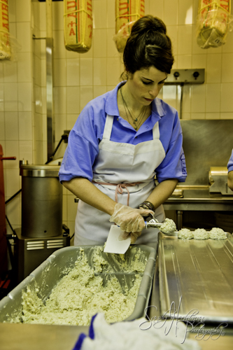 I spent last Thursday making Italian Rice Balls at Faicco’s Pork Store at 260 Bleecker Street. And without that full length mirror to monitor my appearance, the 10 hardworking and honorable hunks at Faicco’s must fill the gap. Indeed, Faicco’s is the only place I know that a self conscious single girl can walk into feeling a little uneasy and alone and, after a few supportive smiles, can walk out feeling like the loveliest lass in the village – and without a mirror in sight.